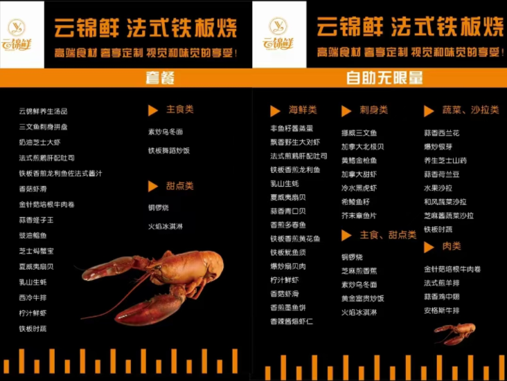 购买此券,可享云锦鲜法式铁板烧228元单人自助餐,(早12:00-晚00:30可用)